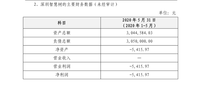 在公告中,扬州志强家政服务平台有限公司科技披露了深圳智慧树的主要财务数据(未经审计),如下图所示。